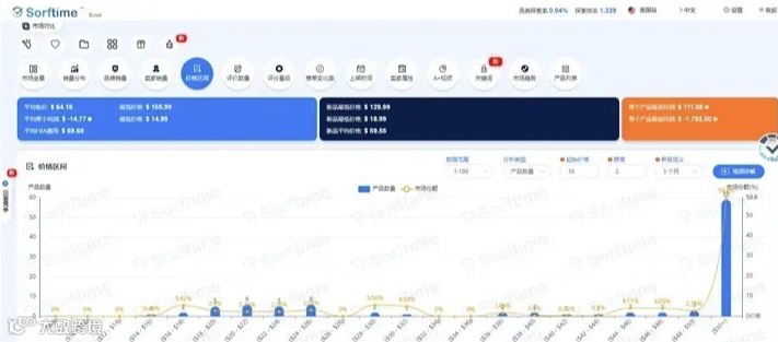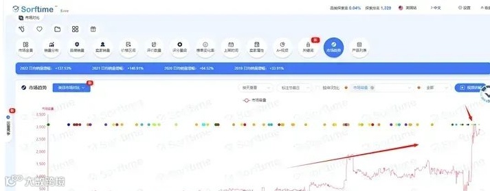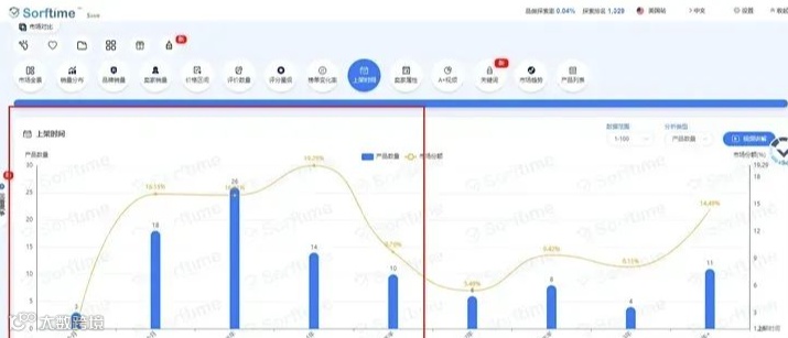 可以看到这个产品是没有季节性,全年都是比较稳定,而且根据softime还可以得出类目一直处于上升阶段。
