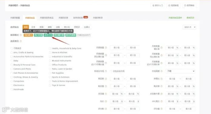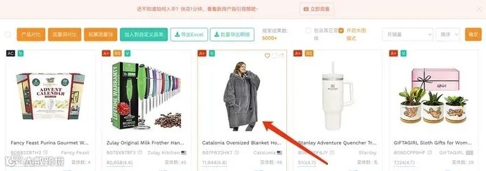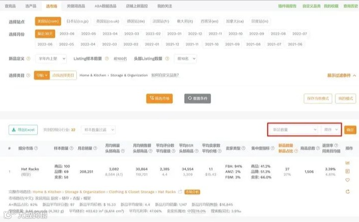 关注产品所在大类排名中表现较理想的产品,根据这路径不断去挖掘其细分类目中的新品产品,以及各小类中排名好、上架时间短、销量上升快的产品;