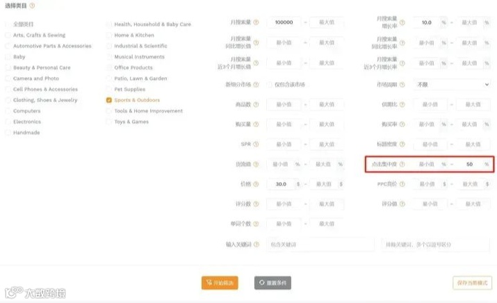 在这个“选商品”栏目里,我们可以输入一些数据指标,例如,如果我们想要选择一些像夏季或冬季这样的商品,我们可以借助之前的数据。