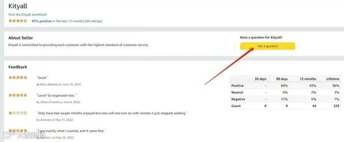 可以进入跟卖者的店铺主页,选择ask question对跟卖者进行留言: