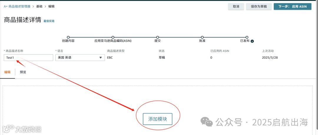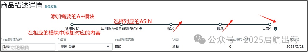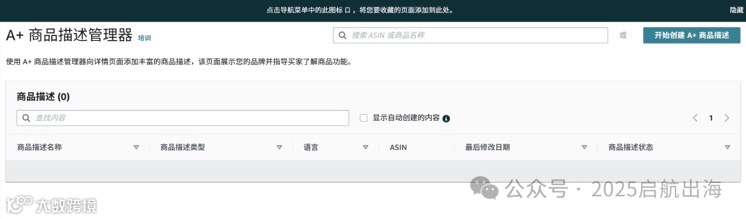 - 点击“广告”菜单下的“A+商品描述管理器”。