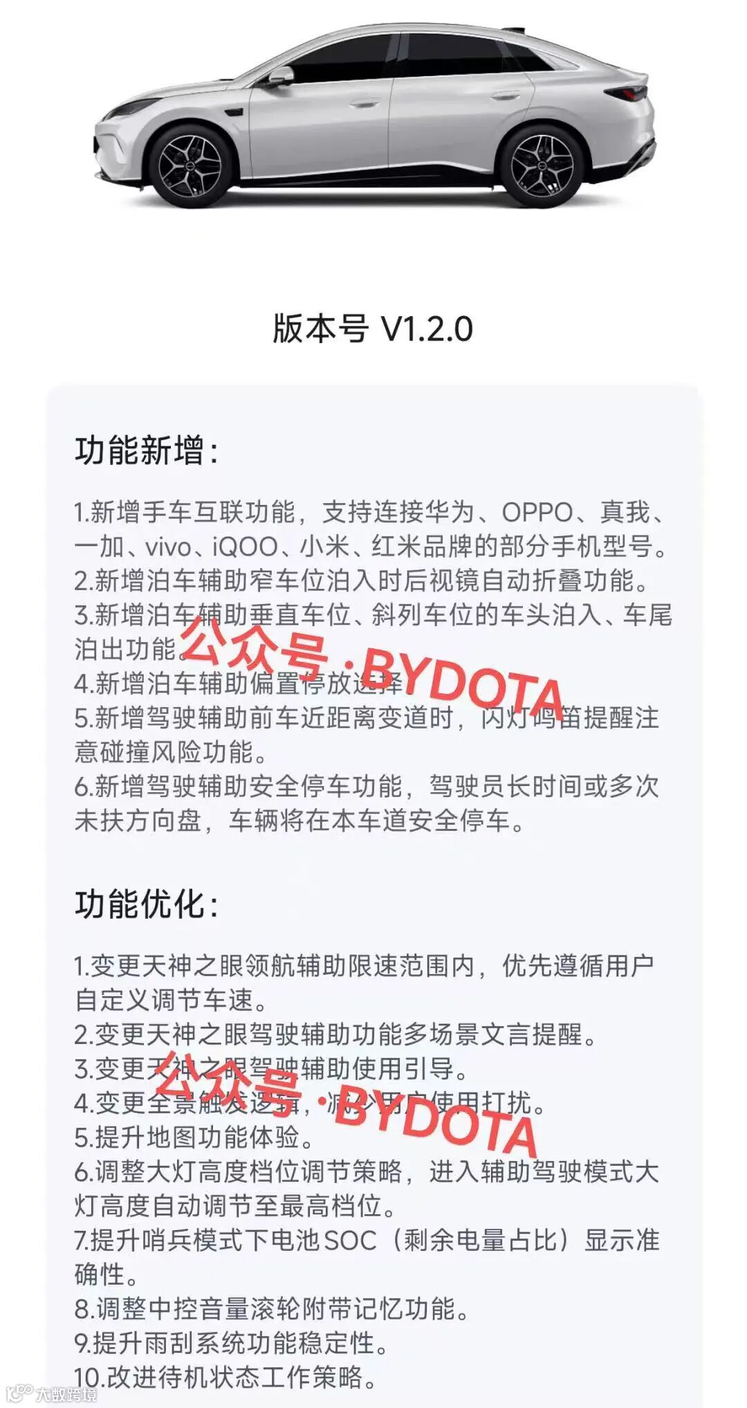 所有固件的版权归属BYD所有,公众号仅提供系统固件更新资讯的整理及资源分享。如怀疑固件来源的可靠性,可以联系您当地的4S售后门店获取升级。