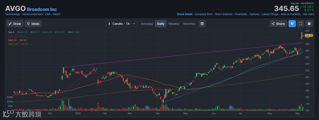 1. 博通(AVGO)收涨3.21%,连续五个交易日上涨。公司预计AI业务增长将显著加快,因新增第四位定制化芯片客户,2026年起将大规模出货。