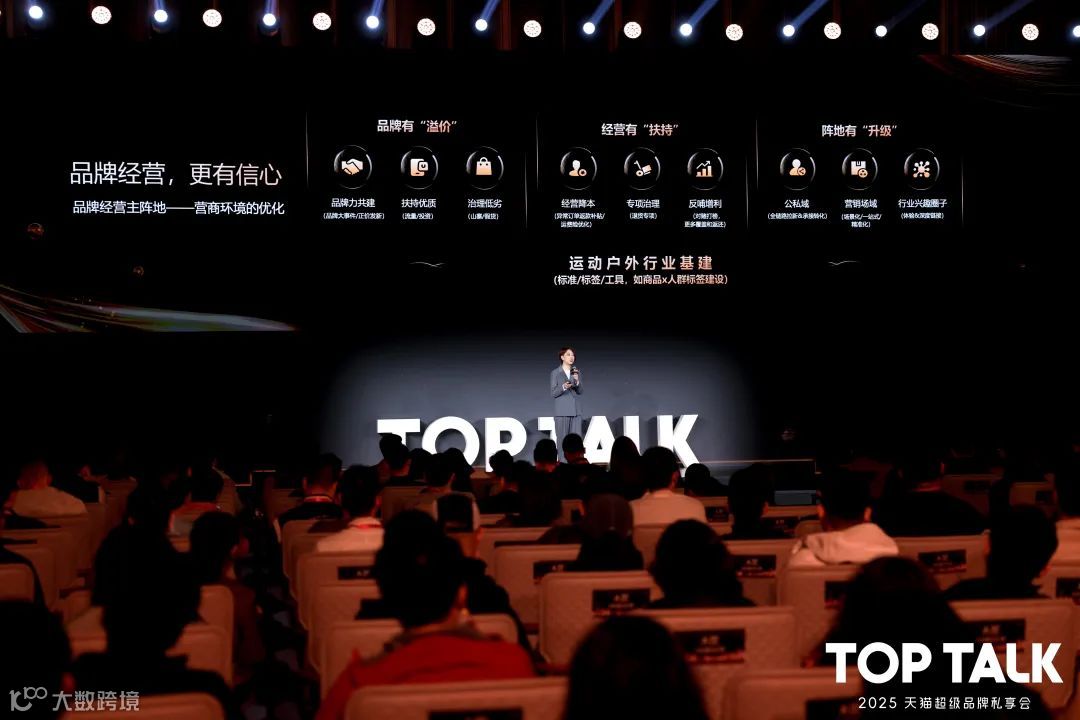 近年来,天猫在运动户外品类领域表现亮眼。2022年天猫双11期间,运动户外与玩具、宠物、珠宝因增速迅猛被称为“新四大金刚”。2025年TopTalk超级品牌私享会上,天猫展示了其在该领域的成功经验。