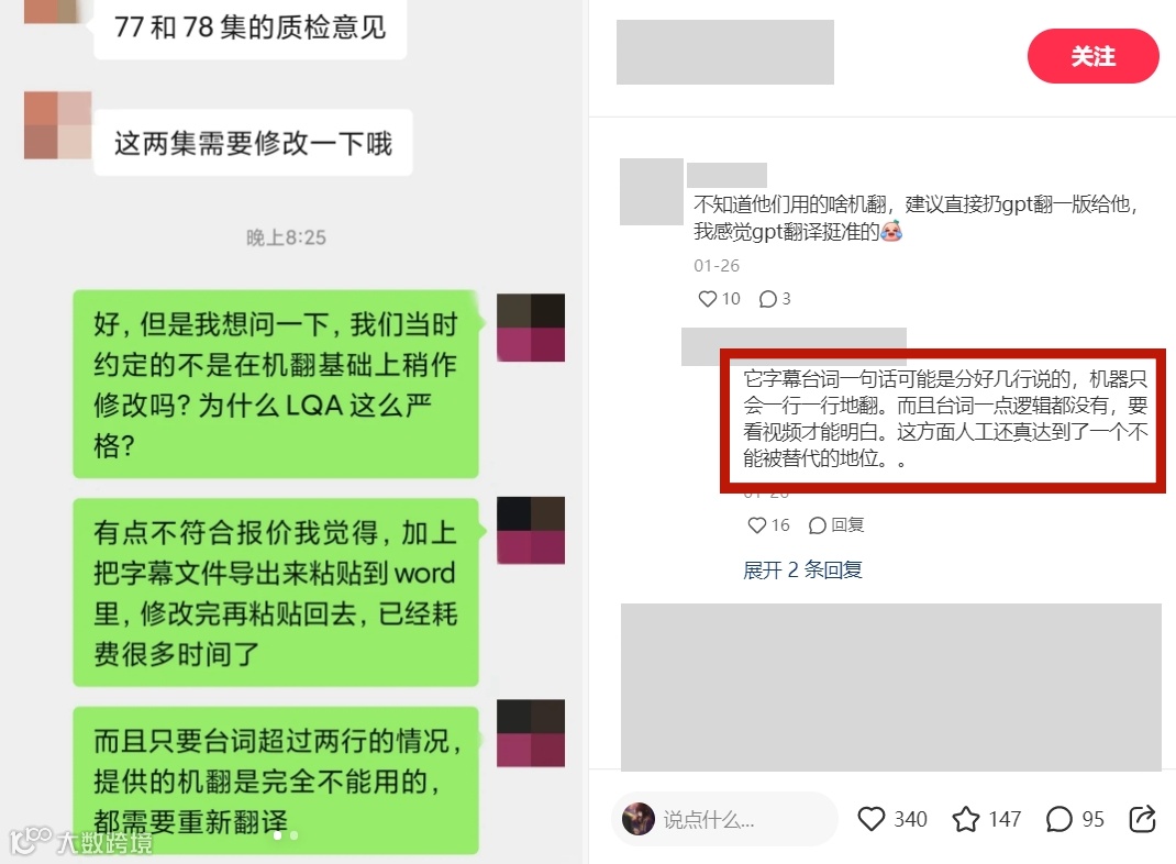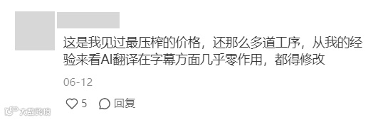 跟价格越压越低不成正比的是翻译难度——不少翻译工作者表示,AI在翻译字幕方面作用并没有外界想象的那么大。