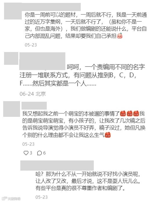 而这位编剧的经历并非个例。在这篇笔记的评论区,我们看到更多编剧对业内某些混乱的吐槽: