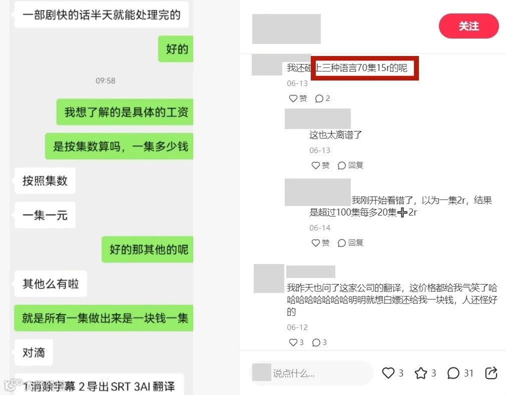 有翻译工作者接到的短剧翻译项目,工作内容包含了消除字幕、导出字幕、翻译、校对等,甲方开价一元一集,把网友们都气笑了,甚至忍不住辣评: