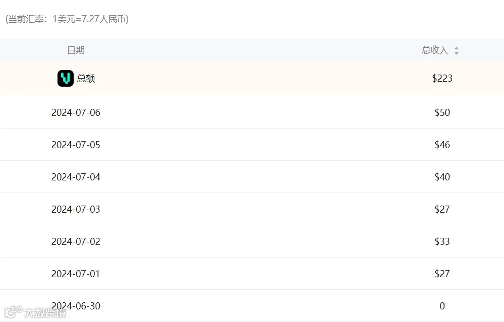 根据点点数据的统计,自上线以来,截止7月6日,VIGLOO的总收入为223美元,折合约一周收入1621.21元人民币。尽管就总金额来说不算特别亮眼,但日均收入正在持续上涨。