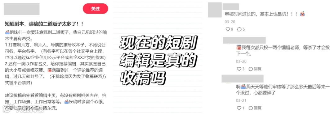 打开小红书,仿佛捅了“骗稿”窝,编剧花式被骗,避雷笔记多不胜数,让人不禁扪心发问:“现在的短剧编辑真的收稿吗?”
