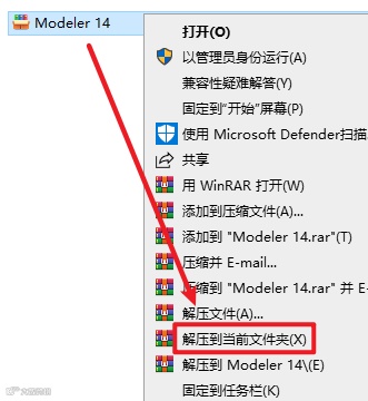 1.选中下载的压缩包,然后右键选择解压到"Modeler 14"