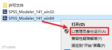 2.打开刚刚解压的文件夹,选中“SPSS_Modeler_141_win64”右键选择“以管理员身份运行”