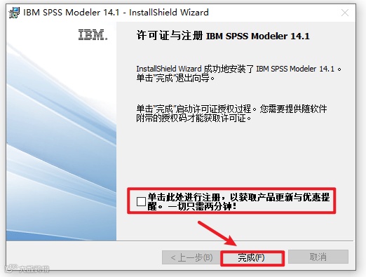 10.取消勾选“单击此处进行注册....”,点击“完成”