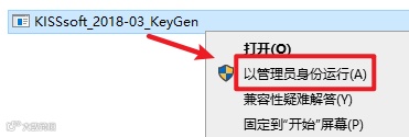 11.返回安装文件夹,双击打开“Crack”文件夹,选中“KISSsoft_2018-03_KeyGen”文件,右键选择“以管理员身份运行”