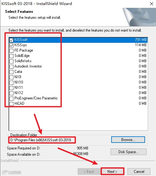 7.勾选需要安装的组件,选择软件安装路径,安装路径不要出现中文,点击“Next”