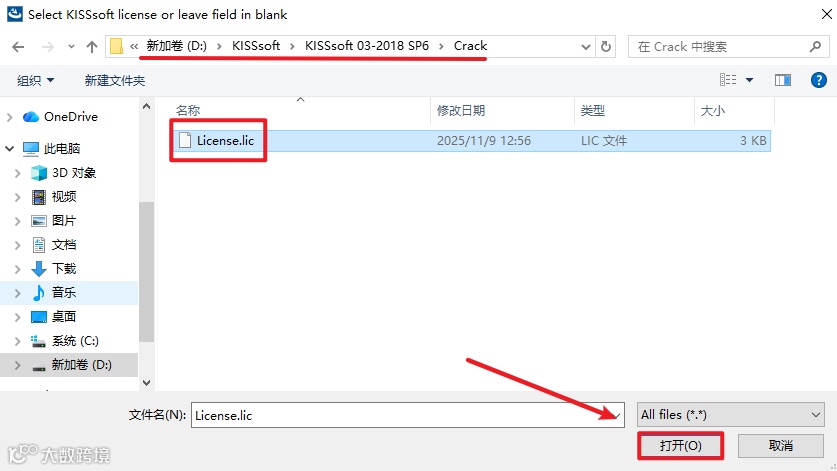 14.选中安装包中生成的“License.lic”许可证文件,点击”打开”