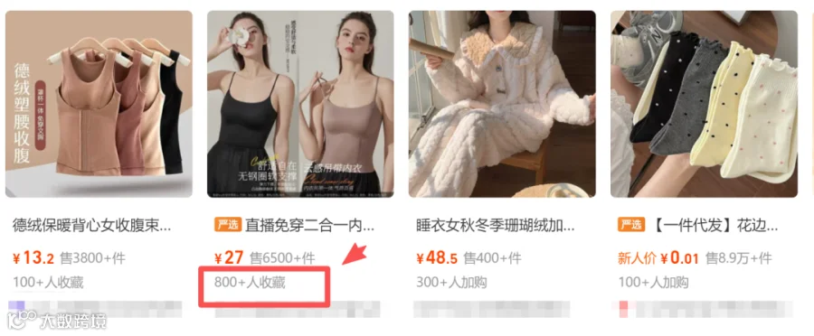 对消费者而言,收藏量是一种社会认同。例如,某款“二合一内衣”收藏量达800+,另一款“收腹内衣”收藏超100+,这些数据有效降低了买家决策成本,显著提升点击率与转化表现。