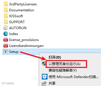 2.打开刚刚解压的文件夹,双击打开“KISSsoft 2022”文件夹,选中“Setup”右键选择“以管理员身份运行”