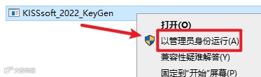 15.返回安装文件夹,双击打开“Crack”文件夹,选中“KISSsoft_2022_KeyGen”文件,右键选择“以管理员身份运行”,会生成一个“License.lic”文件