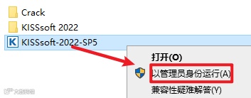 12.返回安装文件夹,选中“KISSsoft-2022-SP5”右键选择“以管理员身份运行”