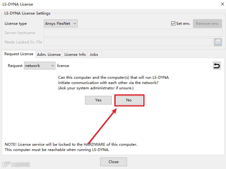 12.点击“Ansys FlexNet”,点击“Request License”,点击“Yes”