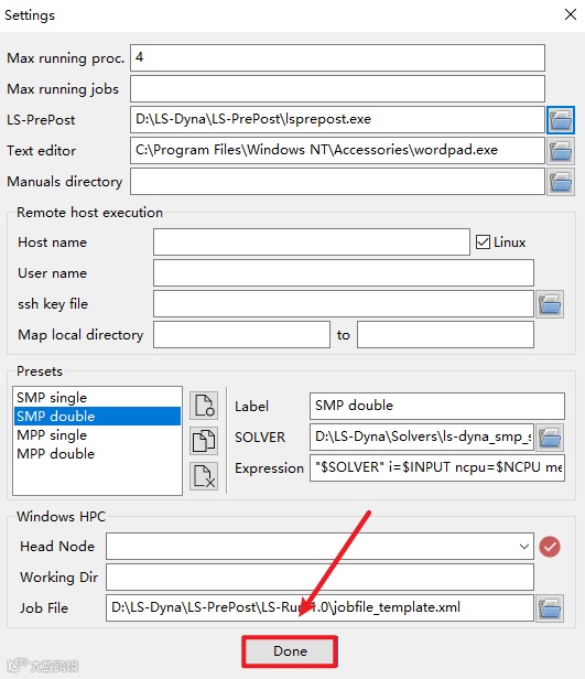 16.设置Solvers位置,第一项选择软件安装路径D:\LS-Dyna\Solvers文件夹下的ls-dyna_smp_d_R13.0_365_x64.exe,点击”打开“