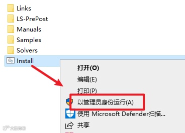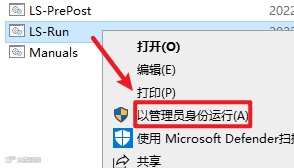 9.返回D盘软件路径:D:\LS-Dyna\Links,找到并选中“LS-Run.bat”,右键选择“以管理员身份运行”