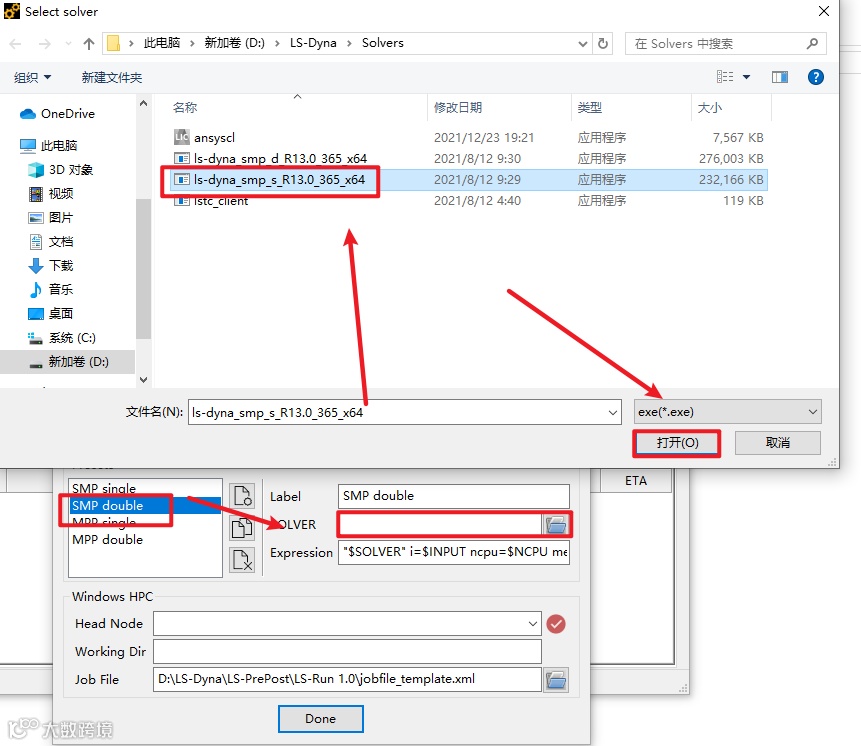 17. double选择ls-dyna_smp_s_R13.0_365_x64.exe,点击”打开“