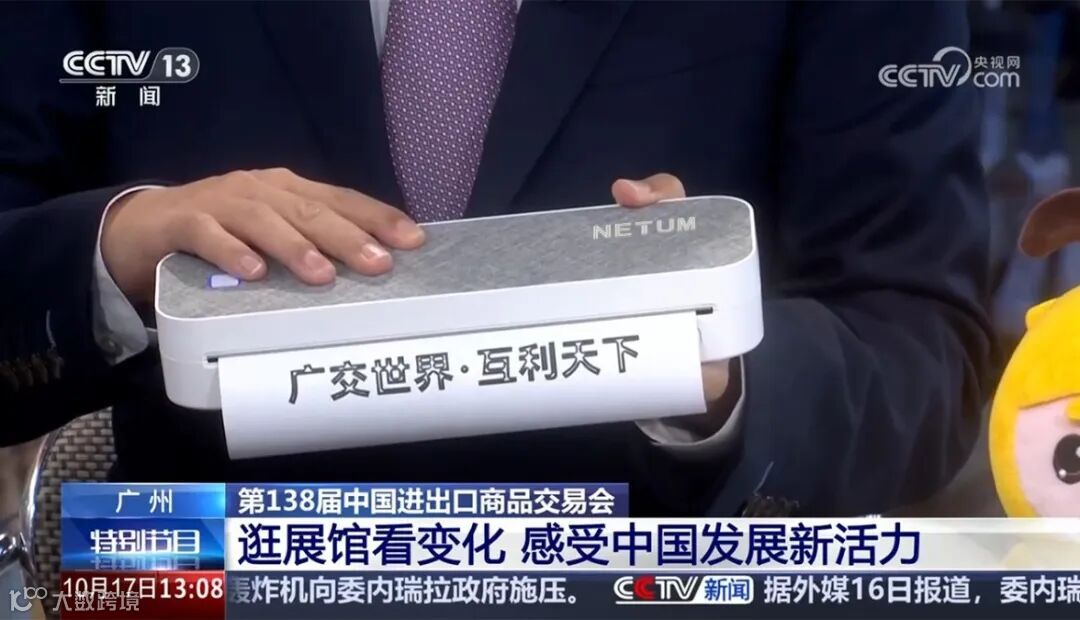 在第 138 届广交会开幕第三天的火热现场,迅镭 (广州) 智能科技股份有限公司的便携打印机登上央视前方演播室,通过主持人的实时演示,将 “广交世界 互利天下” 的展会口号清晰打印成型,成为本届广交会 “外贸优品拓内销” 活动的生动注脚。