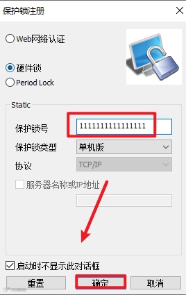 19.在保护锁号处输入16个1,“1111111111111111”,点击“确定”