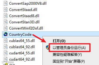 14.继续在文件夹下,找到并选中“CountryCode”文件,右键选择“以管理员身份运行”