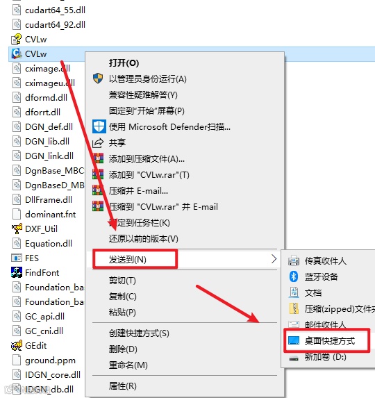 13.继续在文件夹下,找到“CVLw”文件,右键选择“发送到—桌面快捷方式”