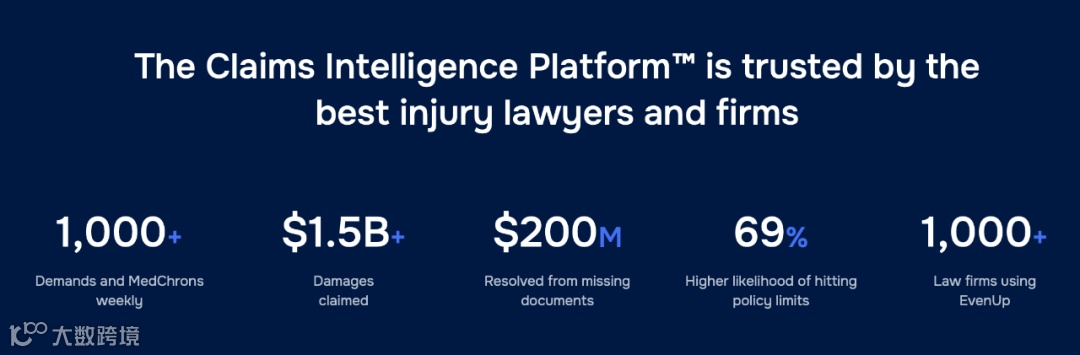 然而,即便是「人身伤害索赔」这个非常垂直的领域,每年受害者的索赔金额高达 1000 亿美金,也是一个非常大的市场了。因此,除了 EvenUp,市面上还有一些法律 AI 公司也聚焦人身伤害赔偿领域,提供类似的产品。