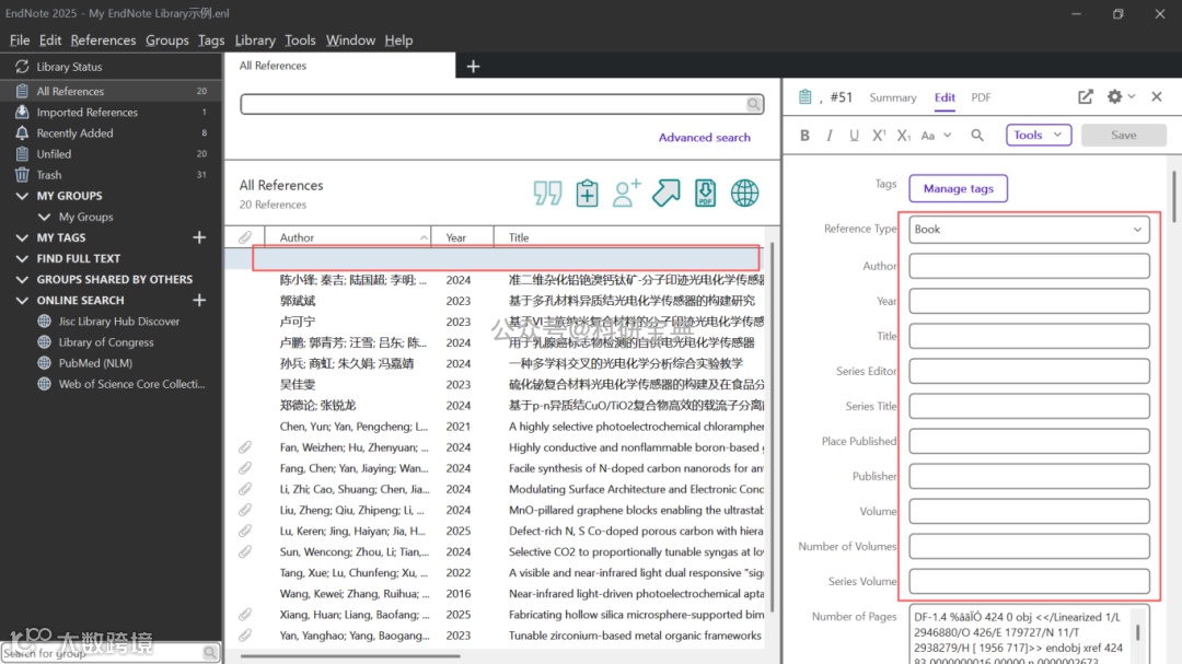 在使用EndNote管理文献时,常会遇到PDF导入后作者、标题、年份等信息缺失的问题。手动补全耗时且易出错。本文提供中英文文献信息补全的高效方法,帮助科研人员提升文献管理效率。