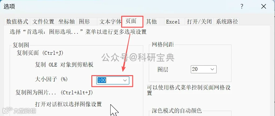 进入【设置】-【选项】-【页面】,将复制图时的大小因子设为【100%】,避免缩放失真。