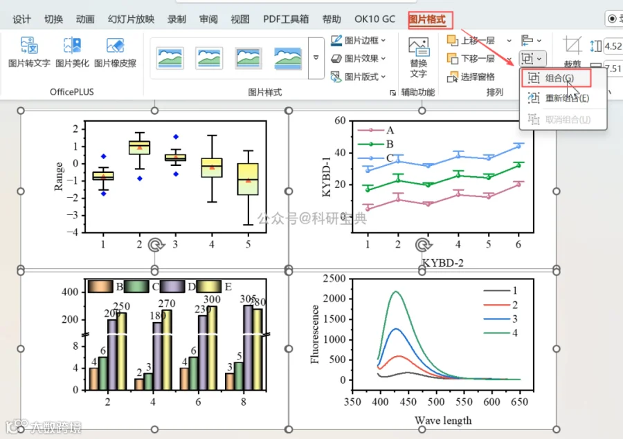 11. 全选图像,右键【组合】-【组合】,或通过【图片格式】-【组合】功能完成整合;