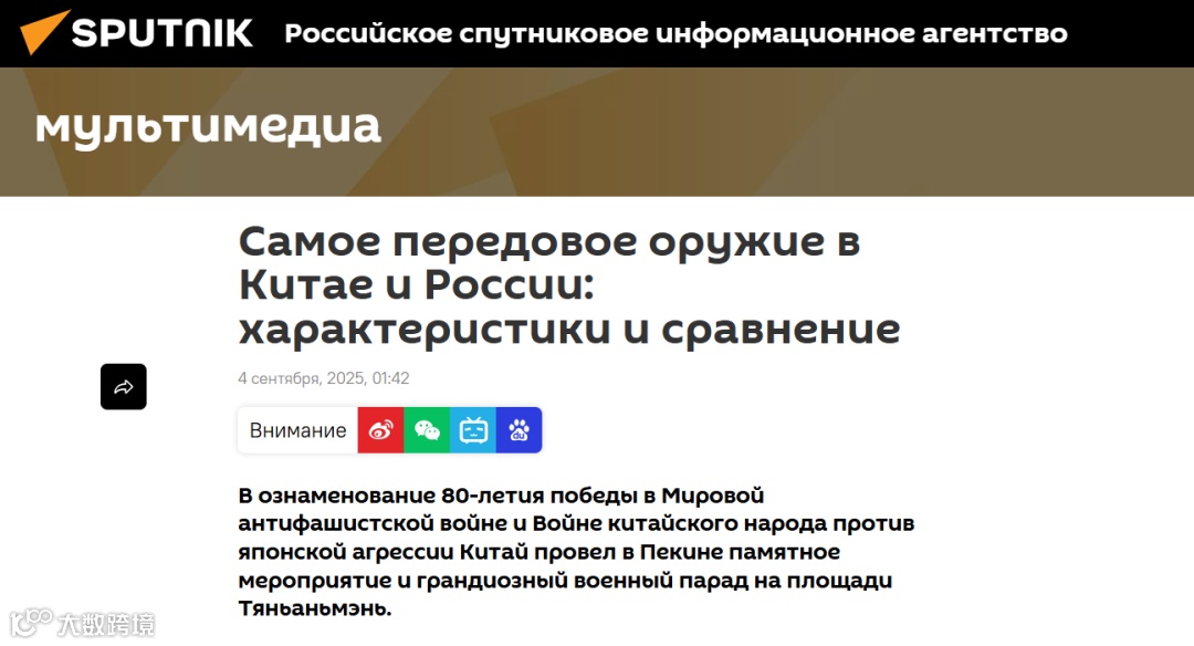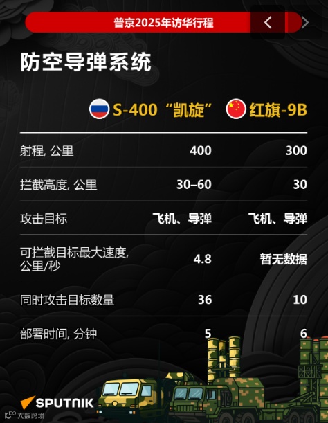 为纪念世界反法西斯战争暨中国人民抗日战争胜利80周年,中国在北京举行纪念活动,并在天安门广场举行盛大阅兵。俄罗斯总统弗拉基米尔·普京出席此次活动。阅兵式上展示了中国多型先进武器系统,涵盖陆、海、空、火箭军等多个军种,全面呈现中国国防科技现代化成果。相关装备的战术技术性能及与俄罗斯同类装备的对比分析,详见俄罗斯卫星通讯社发布的信息图。