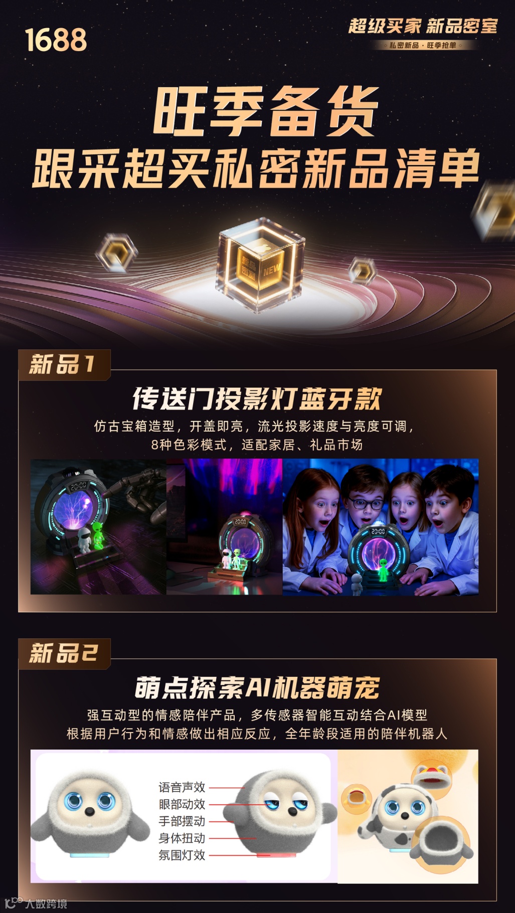 阿里巴巴1688还在为旺季备货烦恼?100多家优质工厂携上千款新品入驻「超买新品密室」,助力跨境卖家高效选品。登录1688工作台-超级买家-新品密室,即可抢先获取新品资源,轻松备战销售高峰。