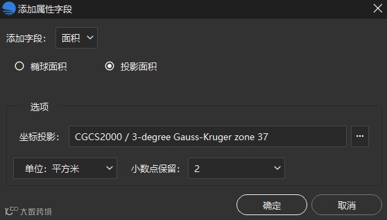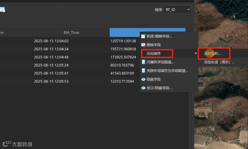 一键计算多种面积:右键属性表字段标题→添加属性→添加面积,可选择计算投影面积或椭球面积。