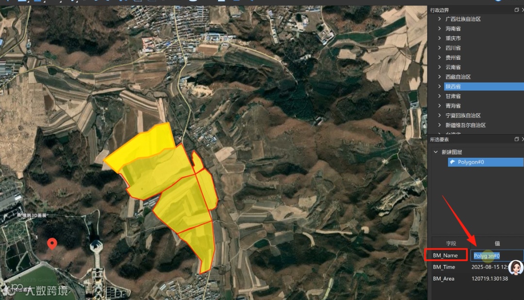 快速重命名:选中图斑后,在右下角直接修改名称、时间等字段,无需进入独立属性表。