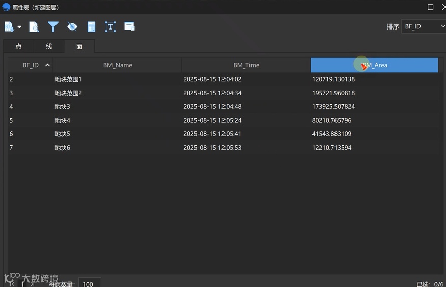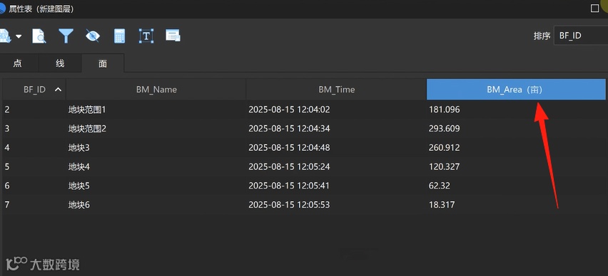 内置面积字段:绘制完成后,属性表自动创建面积字段(BM_Area),无需手动添加。