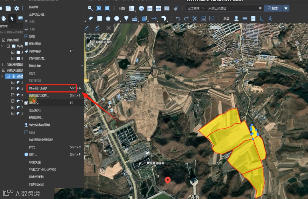 一键标注名称:右键图斑→选择“显示图元名称”,名称即时标注在图上。