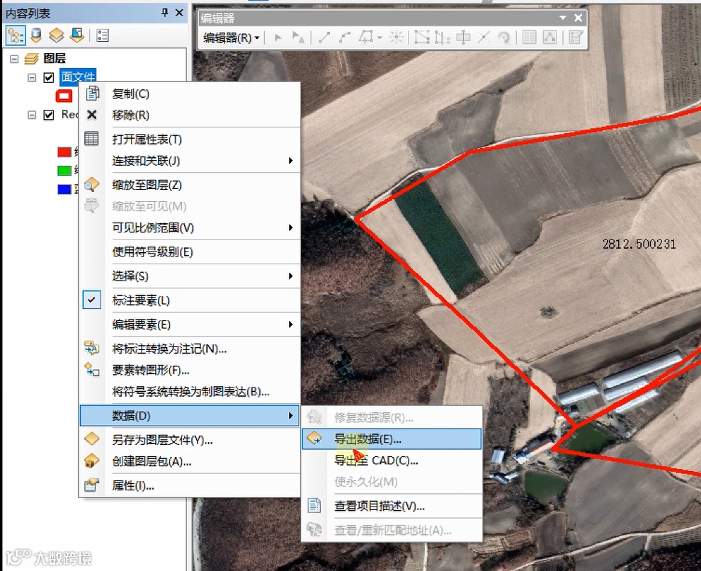 标注需在图层属性中手动设置字段和字体样式,步骤较多。导出需通过“右键→数据→导出数据”,并手动选择范围和坐标系,参数易错。