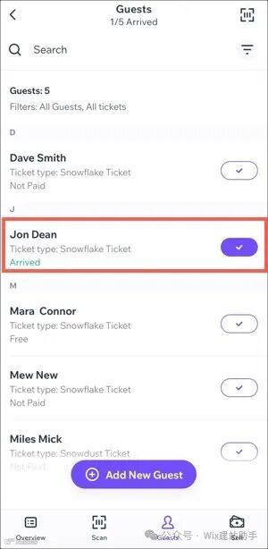 进入【宾客名单(Guest List)】