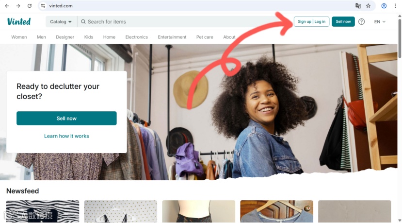 打开Vinted官网,点击右上角注册账号