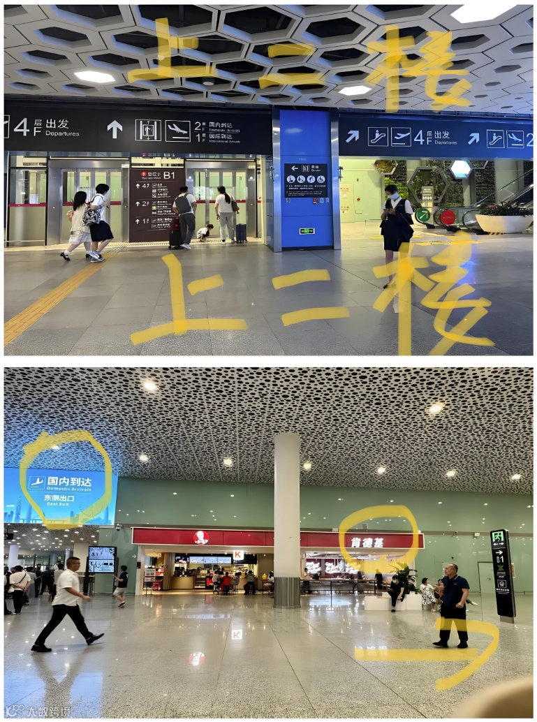 位于国内到达层F2,从电梯出站后向右,沿肯德基方向直行约100米即可到达。