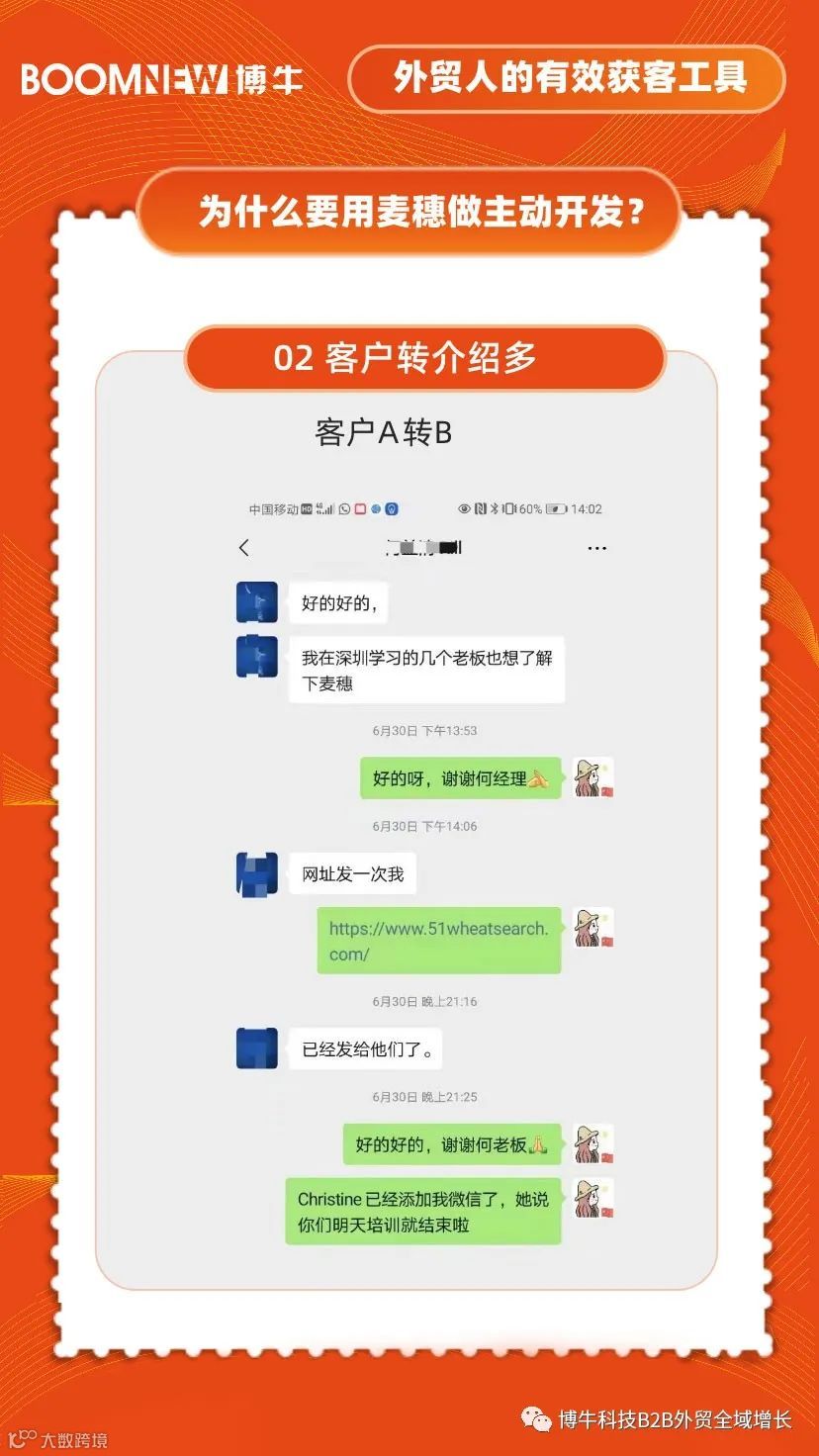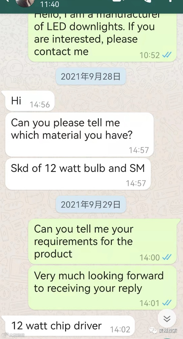 系统支持获取含详细参数的高质量询盘、大额采购需求(如10吨采量)及WhatsApp直通车营销反馈,提升沟通效率。