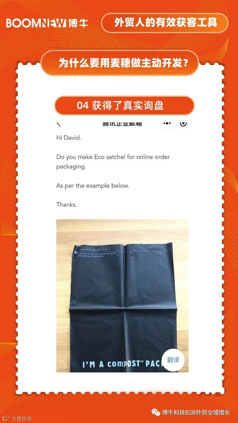 案例显示,用户通过系统成功获取澳大利亚环保袋采购商,样品费顺利收取,成交价提升15%,并实现返单。