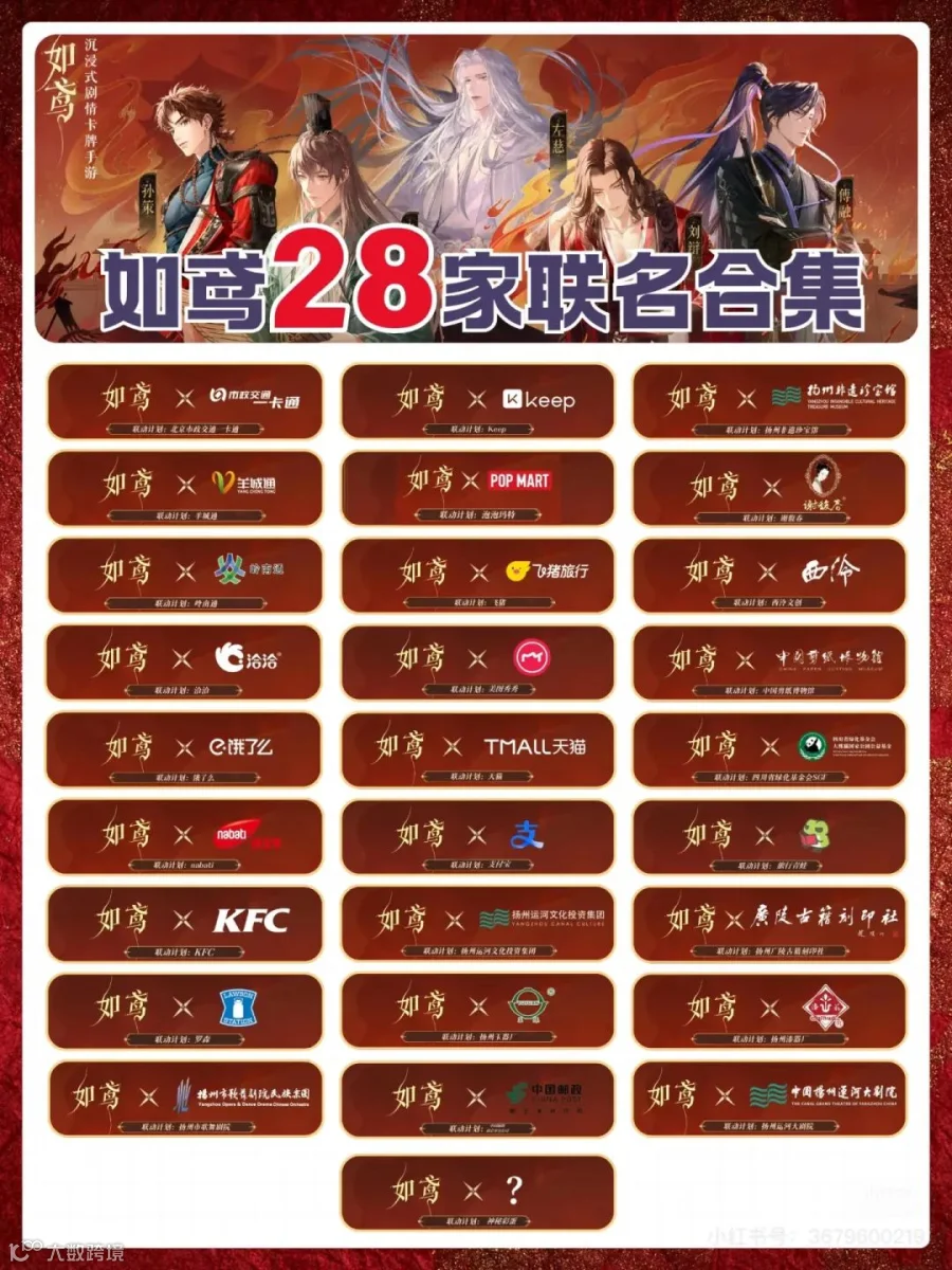 得益于《代号鸢》在港台地区及海外上线后的口碑和影响力,女性向游戏《如鸢》在内地上线后,曾着手与28家品牌同时进行联名活动,创下了同时段IP联名数量之最。(后因游戏內出现争议,玩家抗议舆情反扑,合作有所减少)