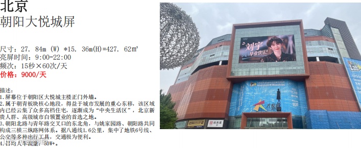曾经包下北京朝阳大悦城大屏给“自推”(即自己喜欢的角色)庆生的冒冒告诉我们,代理商给她的报价是每天500元,3天起租。“地铁的电视墙和灯箱更便宜,打折的时候只需要10块。”当然,每个商家的报价也有差异。比如,价值星球咨询某位代理后,对方给出的北京朝阳大悦城投放价格高达每天9000元。