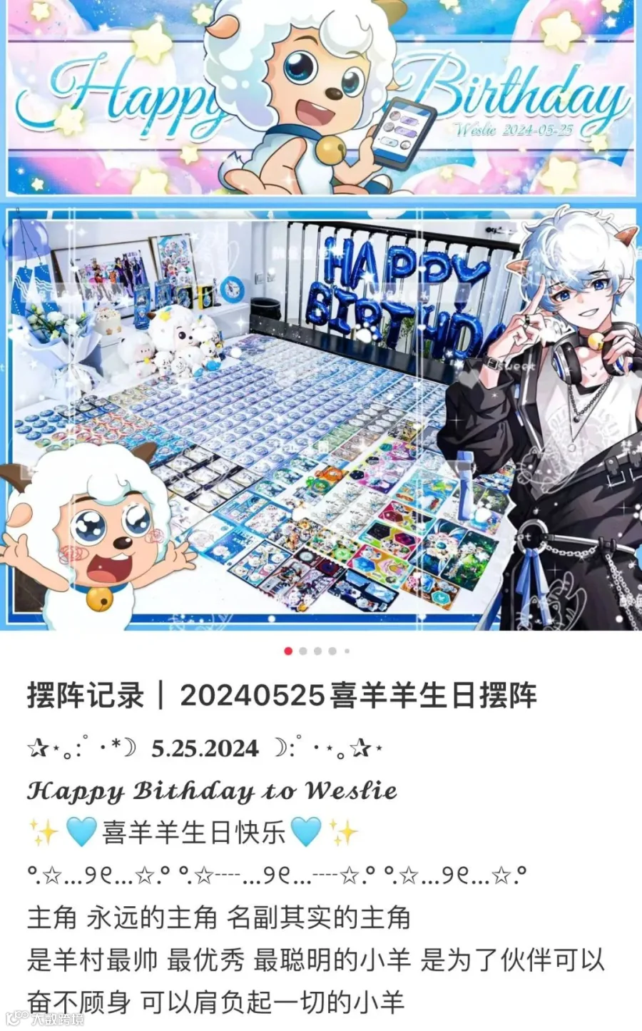 除此之外,在二次元、乙游玩家间,还有约稿、生日only展、应援视频制作等多种庆生方式。在小红书,某博主展示不同数量谷子视觉效果的攻略帖,点赞超过十万。截至目前,平台的#推活日常#标签下,已经有6152万浏览量和30.6万讨论。